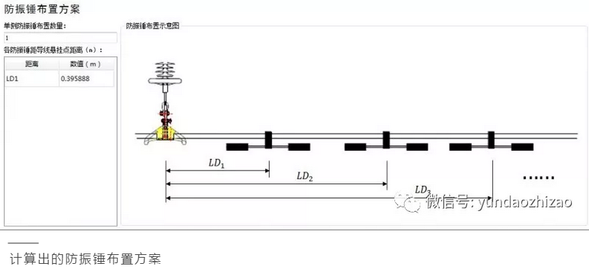 防振錘布置方式的計算是基于電力行業(yè)標(biāo)準(zhǔn),基于防振錘效果最大化的原則,根據(jù)導(dǎo)線參數(shù),計算出防振錘的安裝位置。